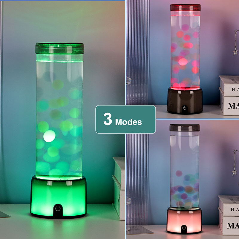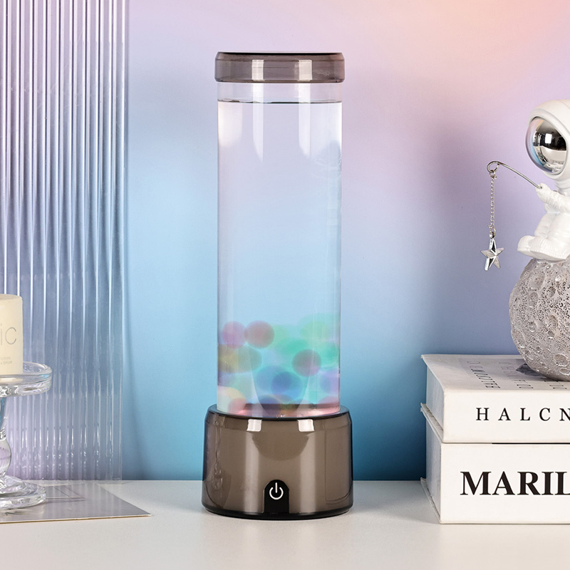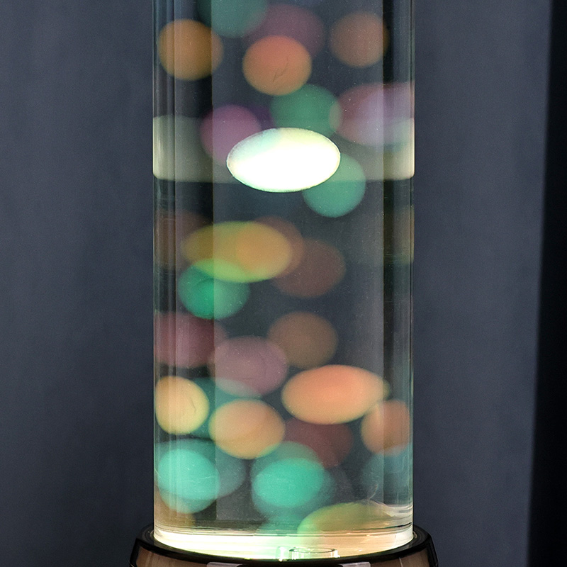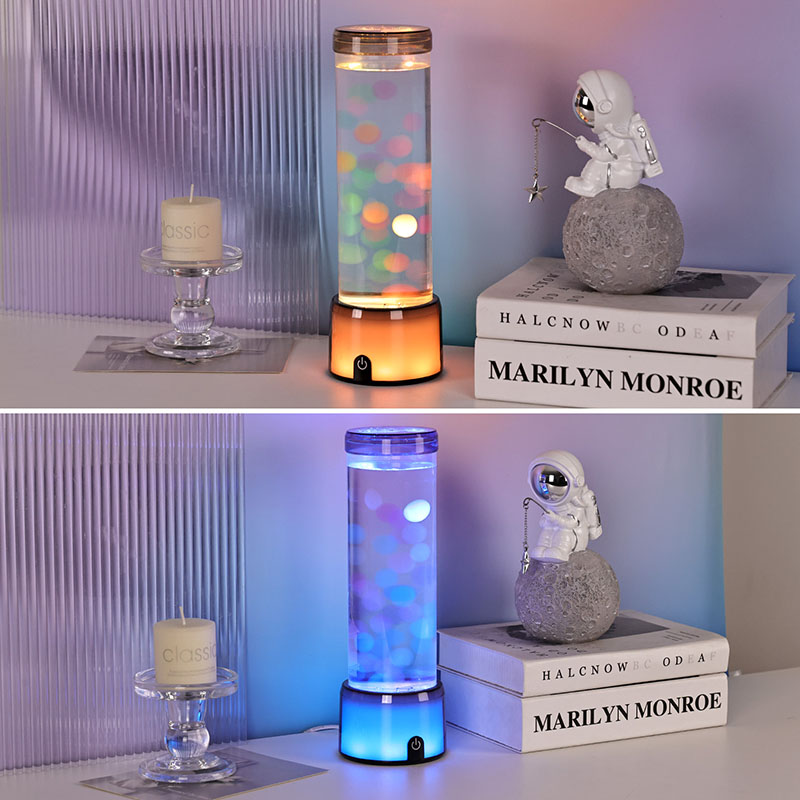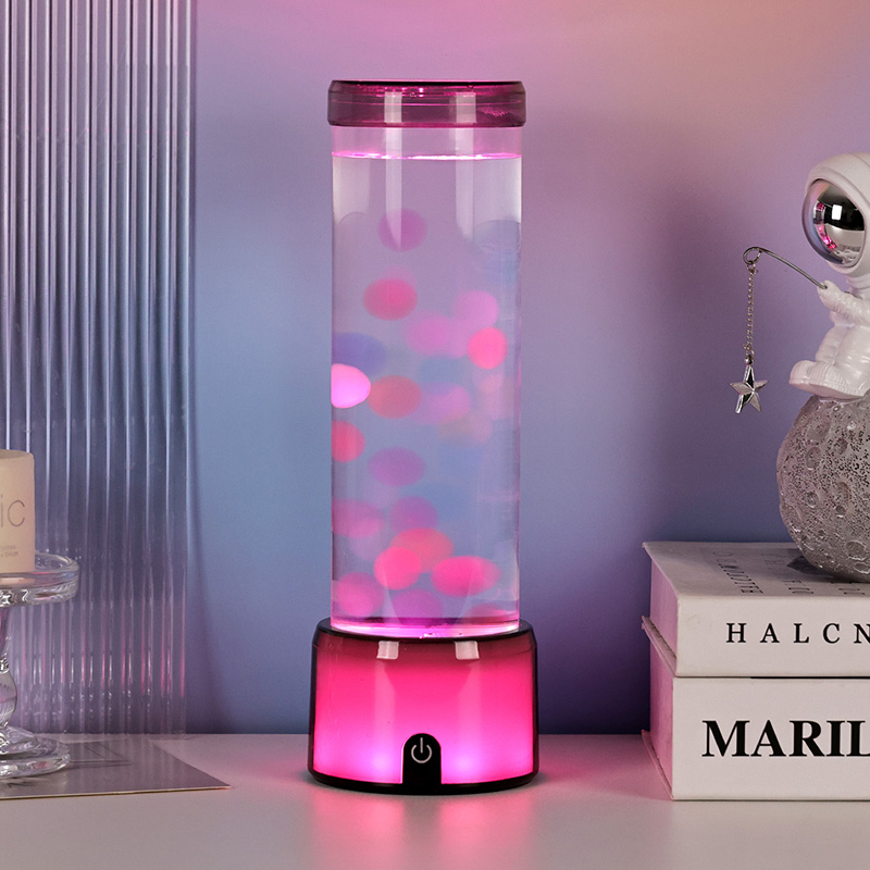 The lamp’s tall, elegant cylinder shape gives it a modern, minimalist look that complements various interior styles. Its transparent body allows full visibility of the internal elements, including the floating jellyfish and the shimmering light reflections. The liquid inside is specially formulated to simulate water flow, enhancing the realism of the floating motion. As the LEDs shift colors, the jellyfish appear to pulse with life, adding depth and movement to the scene.