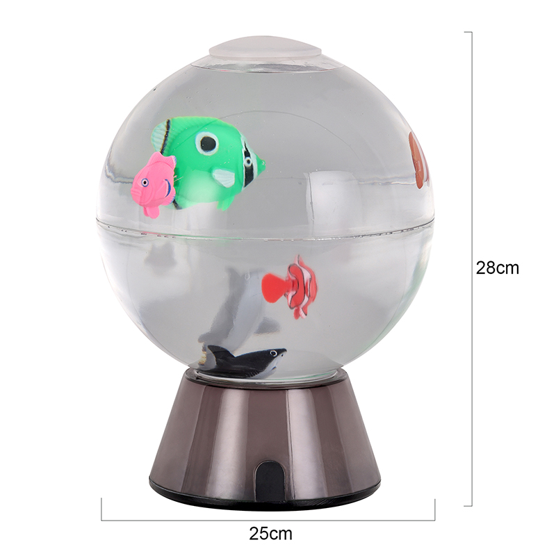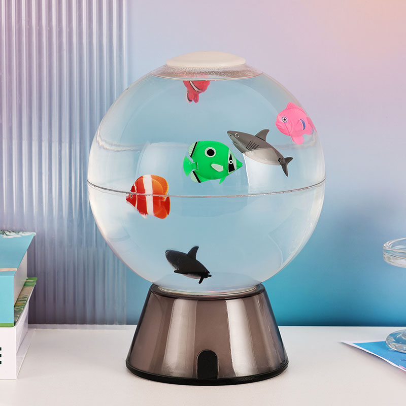 the beauty of an underwater world into your home or office. This transparent spherical aquarium features lifelike simulation fish that glide gracefully through water, guided by gently rising bubbles