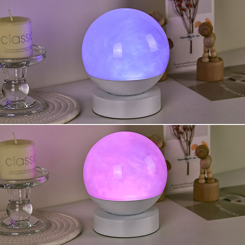 Employing advanced LED luminous efficiency technology, combined with an internal special optical design, the lighting inside the sphere creates a dynamic effect resembling slow-flowing clouds and mist. The colors shift seamlessly