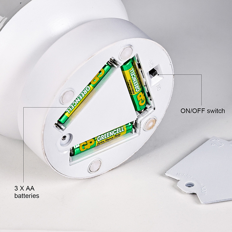 No need for plugging in; it can be powered by just 3 AAA batteries, featuring simple installation and flexible use. Whether placed on a nightstand, desk, baby crib, or taken camping