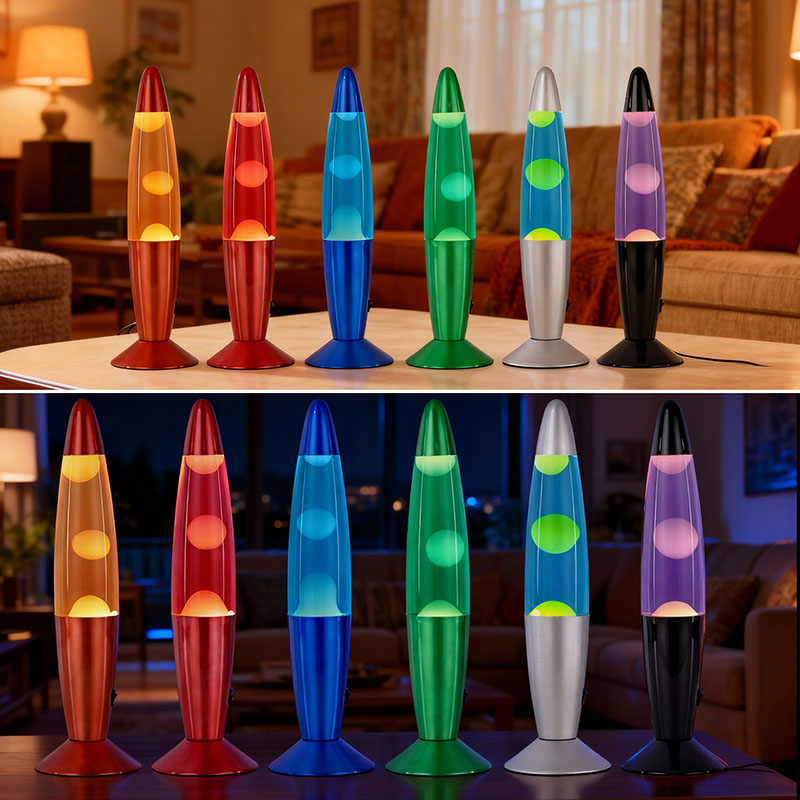 Designed for both style and functionality, this lava lamp features a sleek, tapered silhouette with a polished metal base finished in rich, metallic enamel. Available in an array of bold colors including deep red, royal blue, vibrant green, shimmering silver, elegant black, and warm copper, each lamp offers a unique aesthetic that complements any décor—from minimalist living rooms to eclectic bedrooms and cozy home offices.