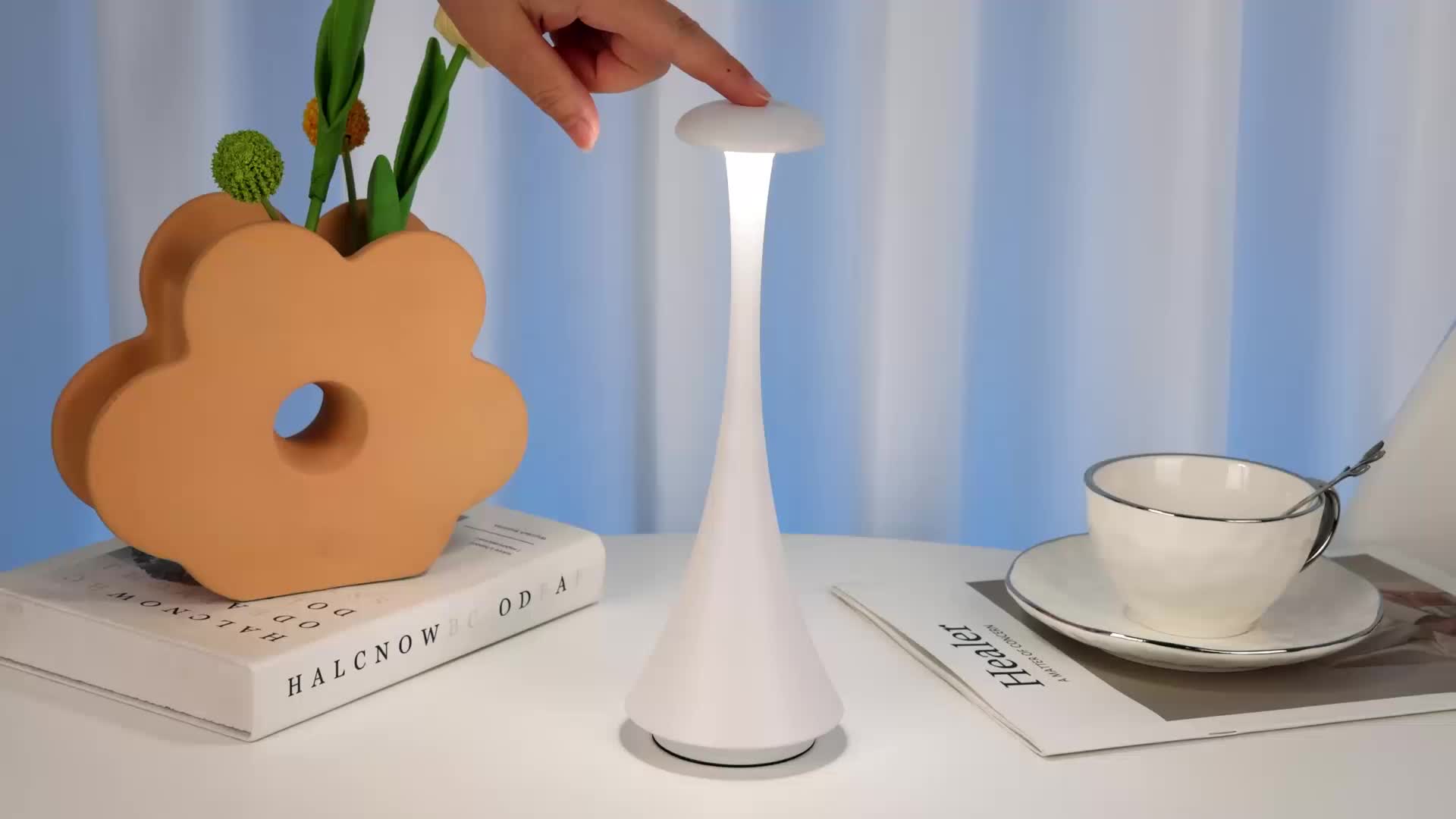 Touch Dimming switchNewly Design LED Desk Lamp with Rechargable Battery with its simple and smooth lines and ergonomic shape, mushroom shaped and needle tail design, and metal warm light LED desk lamp, is not only a practical lighting tool,