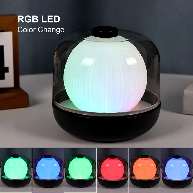 Inside the orb, advanced RGB LED technology enables smooth color transitions and dynamic lighting modes, shifting effortlessly from calming blues and purples to warm oranges and reds to suit your mood or setting.