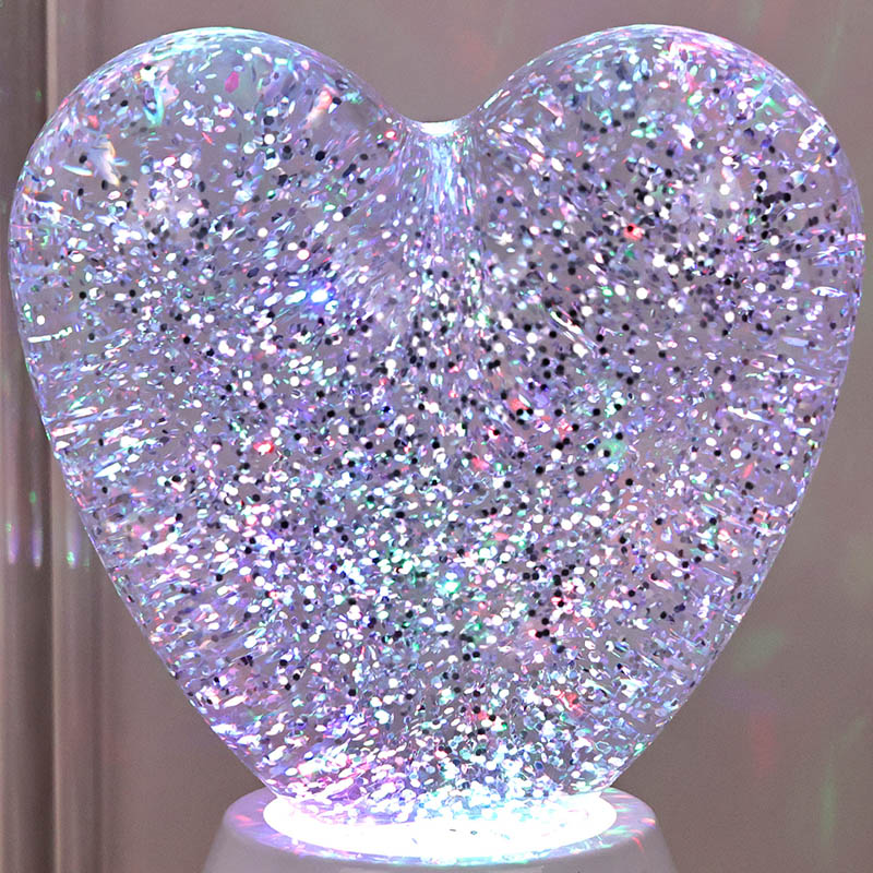 One of the standout features of this lamp is its use of glitter within the heart-shaped container. As the light changes color, the glitter inside the container creates a beautiful, sparkling effect that adds a touch of magic to your space. This unique design element not only enhances the visual appeal but also adds a playful and whimsical touch to your decor.