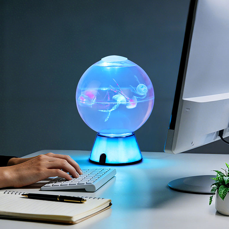 appearance of each jellyfish. Whether placed on a nightstand, desk, shelf, or as a centerpiece, this