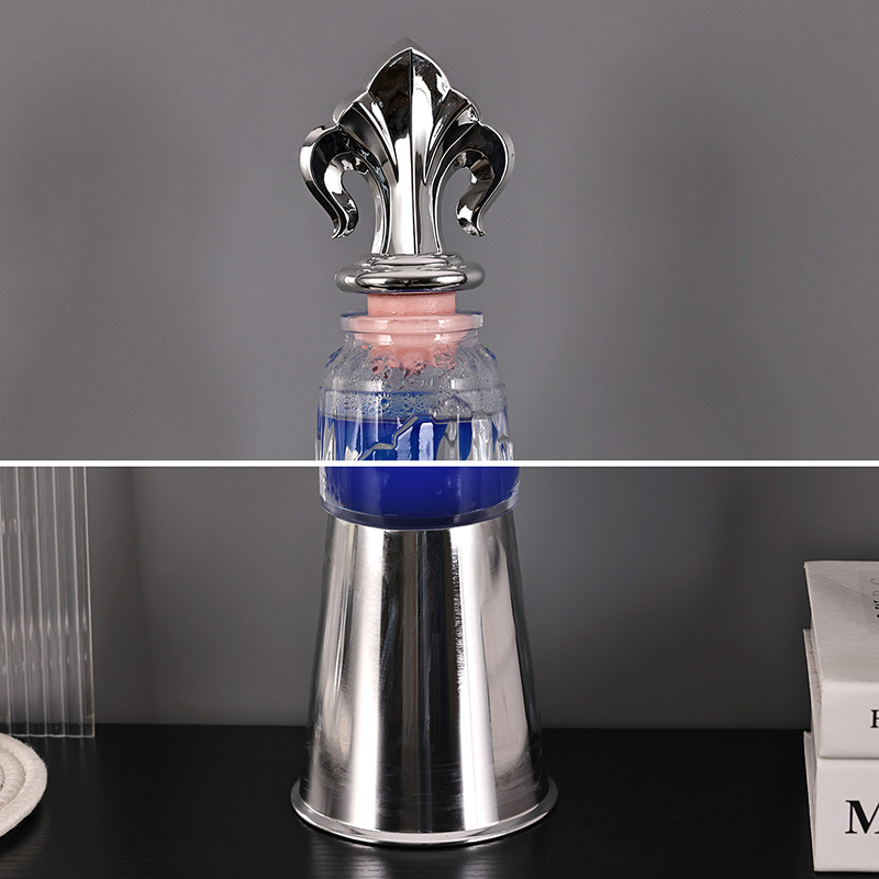 The clear water flows slowly, like mysterious creatures in the deep sea, creating a peaceful and dreamlike atmosphere. The design of the silver base is stable and elegant, enhancing